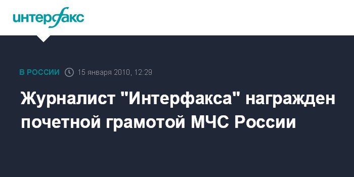Журналист "Интерфакса" награжден почетной грамотой МЧС России