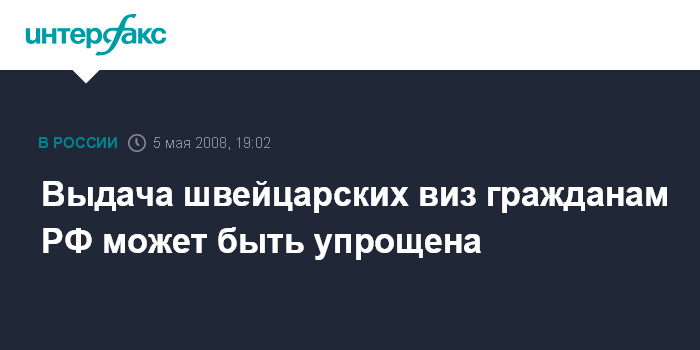 Москва. 5 мая. INTERFAX.RU - Правительство России рассмотрит в четверг вопрос о подписании соглашения с Федеральным советом Швейцарской Конфедерации об упрощении выдачи виз гражданам РФ и Швейцарской Конфедерации. В материалах, подготовленных к заседанию, подчеркивается, что ключевым аспектом соглашения является упрощение процедуры и порядка выдачи однократных виз сроком действия до 3 месяцев, а также многократных виз для определенных категорий граждан.