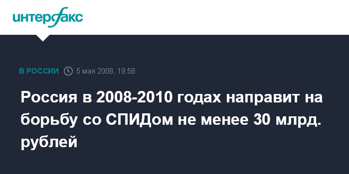 Россия в 2008-2010 годах направит на борьбу со СПИДом не менее 30 млрд. рублей