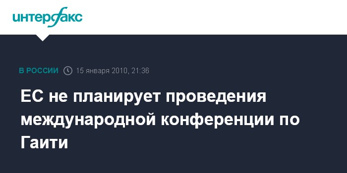Брюссель. 15 января. INTERFAX.RU - Европейская комиссия не рассматривает возможности проведения международной конференции по устранению последствий землетрясения в Гаити, сообщает французское издание "20 minutes".