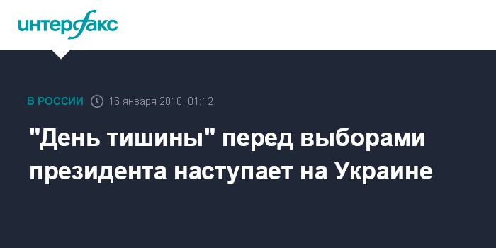 Киев. 16 января. ИНТЕРФАКС-УКРАИНА - Срок ведения предвыборной агитации кандидатами в президенты истекает в полночь (1:00 мск) на Украине.