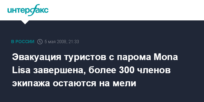 Как сообщалось, судно Mona Lisa в воскресенье утром село на мель в Ирбенском проливе в 18 км от берега, несмотря на благоприятные погодные условия. На борту судна, по разным данным, находились от 651 до 747 пассажиров - в основном пожилых немцев.