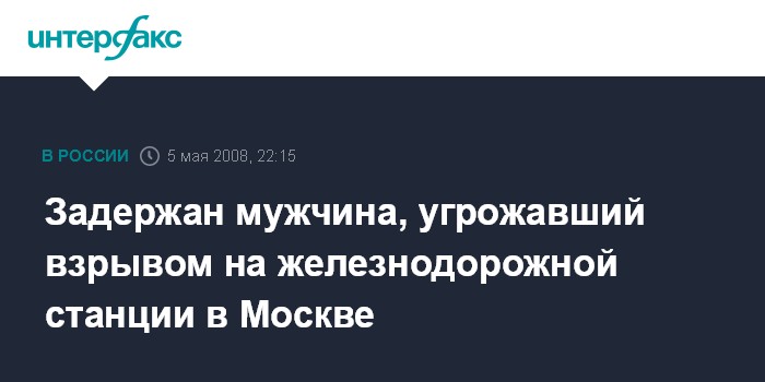Москва. 5 мая. ИНТЕРФАКС-МОСКВА - В Москве сотрудники правоохранительных органов задержали мужчину, угрожавшего привести в действие взрывное устройство на железнодорожной платформе "Маленковская" ярославского направления.