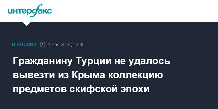 Симферополь. 5 мая. ИНТЕРФАКС-УКРАИНА - Крымские таможенники задержали в аэропорту Симферополя коллекцию предметов скифских времен, которую пытался вывезти из Украины гражданин Турции.