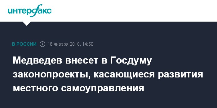 Медведев внесет в Госдуму законопроекты, касающиеся развития местного самоуправления