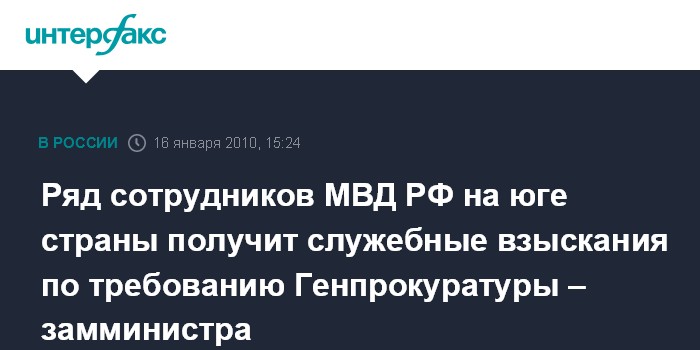 Ряд сотрудников МВД РФ на юге страны получит служебные взыскания по требованию Генпрокуратуры – замминистра