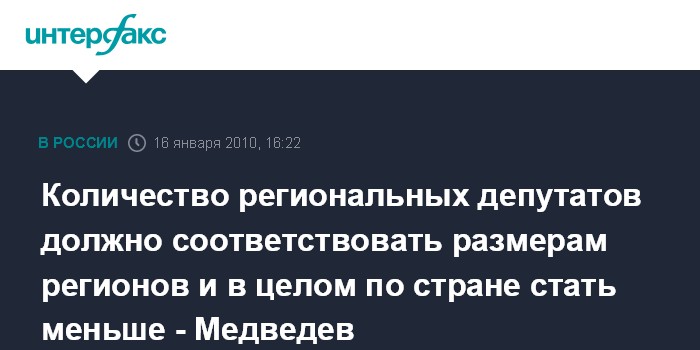 Количество региональных депутатов должно соответствовать размерам регионов и в целом по стране стать меньше - Медведев