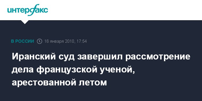 Вашингтон. 16 января. INTERFAX.RU - Рассмотрение дела французской ученой Клотильд Рейсс, арестованной в Иране минувшим летом в разгар массовых беспорядков в Тегеране, завершено, информирует телекомпания Си-Эн-Эн со ссылкой на сообщения иранских СМИ. "На нынешнем заседании мной и моей подзащитной были представлены последние доказательства в пользу ее защиты, и мы надеемся, что суд, основываясь на наших доводах, в ближайшие дни вынесет вердикт о ее невиновности", - сказал адвокат подсудимой Мохаммед Али Махдави. Как отмечает Си-Эн-Эн, остается неясным, в чем конкретно обвиняется К.Рейсс. Тем не менее, говорится в сообщении, в ходе судебных заседаний она признала, что принимала участие в незаконных демонстрациях, организованных иранской оппозицией, недовольной результатами президентских выборов 12 июня.