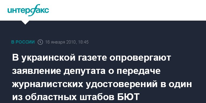 В украинской газете опровергают заявление депутата о передаче журналистских удостоверений в один из областных штабов БЮТ