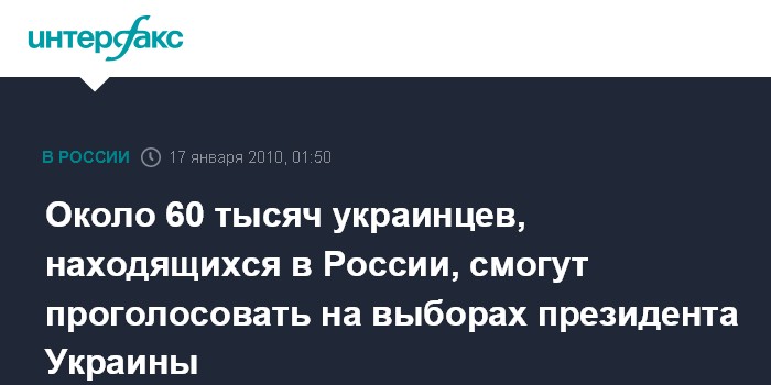 "Голосование по выборам президента Украины на территории Российской Федерации будет проходить, в соответствии с законодательством, на участках, открытых в помещениях дипломатических представительств. Таких участков пять, созданы они на базе посольства Украины в Москве, а также генеральных консульств Украины в Ростове-на-Дону, Владивостоке, Тюмени и Санкт-Петербурге", - сообщил в пятницу "Интерфаксу" пресс-секретарь посольства Украины в РФ Олег Волошин.