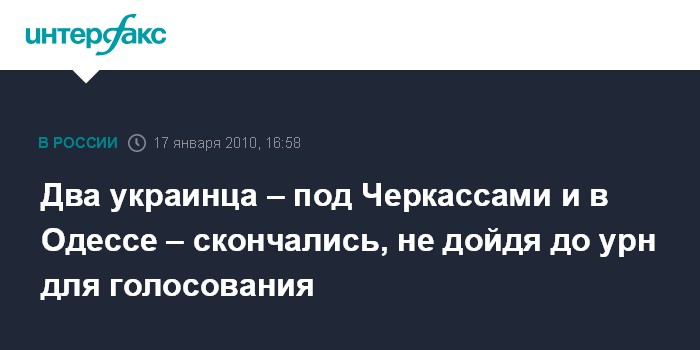 Киев/Одесса. 17 января. INTERFAX.RU - Два ЧП с трагическим исходом отмечены в день голосования на Украине.