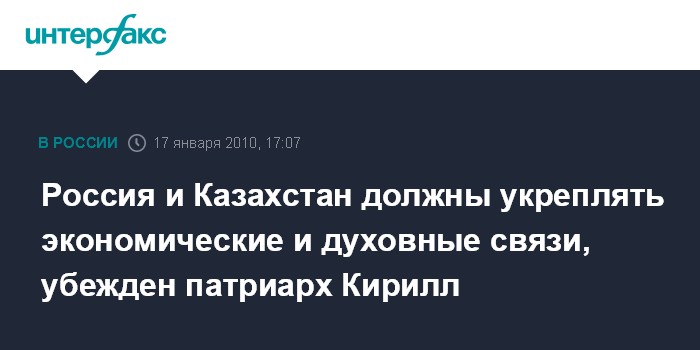 Россия и Казахстан должны укреплять экономические и духовные связи, убежден патриарх Кирилл