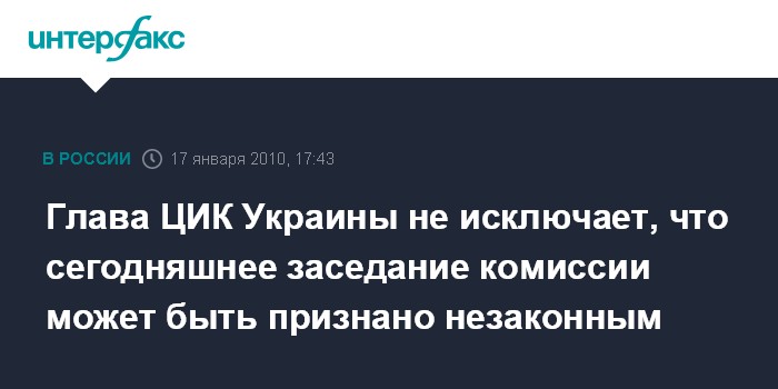 Киев. 17 января. INTERFAX.RU - Легитимность заседаний Центральной избирательной комиссии Украины может быть оспорена, считает председатель ЦИК Владимир Шаповал, сообщает 5-канал украинского телевиденья в воскресенье. В.Шаповал отметил, что у "него ощущение, будто бы он пребывает на незаконном заседании ЦИК".