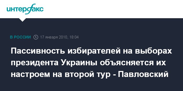 Пассивность избирателей на выборах президента Украины объясняется их настроем на второй тур - Павловский