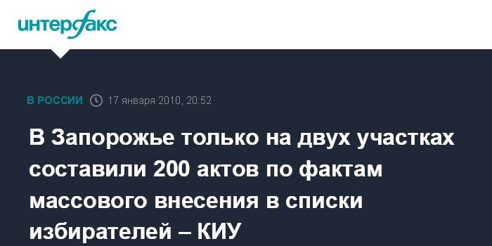 Запорожье. 17 января. INTERFAX.RU - В Запорожье только на двух участках: 4-м и 5-м (78 территориальный округ) составили 200 актов по фактам массового внесения в списки избирателей.