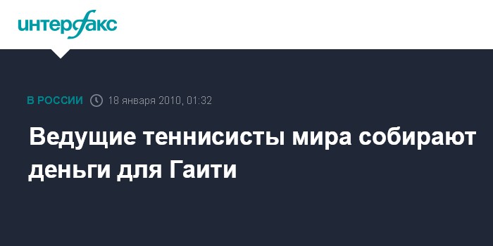 Лондон. 18 января. INTERFAX.RU - Первая ракетка мира Роджер Федерер и другие ведущие теннисисты мира посвятили последний выходной день перед началом Открытого чемпионата Австралии в Мельбурне пострадавшим от землетрясения на Гаити, сыграв выставочный матч.