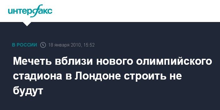 Москва. 18 января. INTERFAX.RU - Строительство крупнейшей в Европе мечети вблизи нового олимпийского стадиона в Лондоне отменено, пишет британская газета Times.