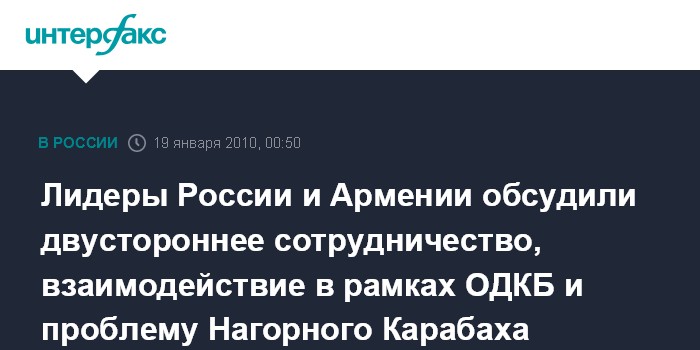 По его словам, Д.Медведев и С.Саргсян также обменялись мнениями по международной проблематике, вопросам взаимодействия в рамках ОДКБ, нагорно-карабахскому урегулированию.