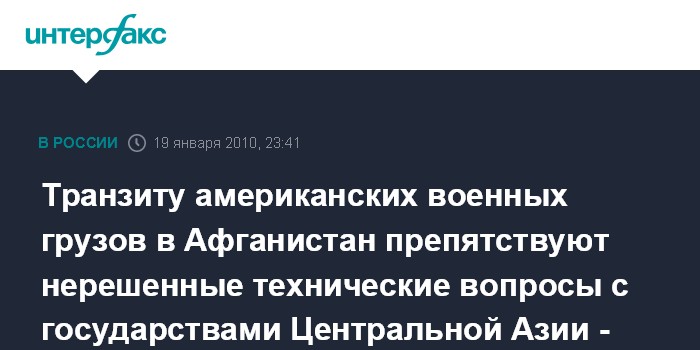 С.Лавров также отметил, что Москва обеспечила транзит в Афганистан через свою территорию лишь одного самолета с американскими военными грузами. Он также добавил, что от США поступала и вторая подобная заявка, но по неизвестными причинам ее отозвали.
