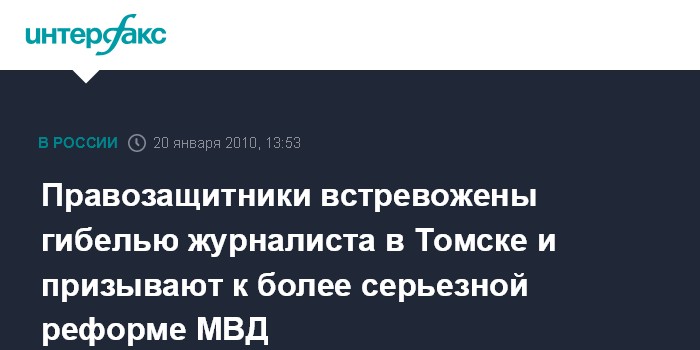 Москва. 20 января. INTERFAX.RU – Гибель журналиста в Томске, в которой обвиняют милиционера, свидетельствует о том, что реформа МВД должна быть более радикальной, заявляют правозащитники.