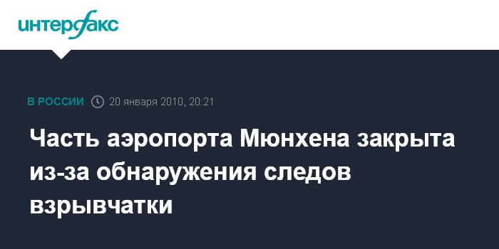 Берлин. 20 января. INTERFAX.RU - Полиция закрыла часть аэропорта немецкого города Мюнхена после обнаружения следов взрывчатых веществ при проверке ноутбука одного из пассажиров, сообщает агентство ЭФЭ.