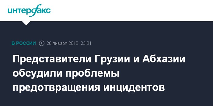 Сухуми. 20 января. ИНТЕРФАКС - Встреча в рамках механизма по предотвращению и реагированию на инциденты с участием представителей абхазской, грузинской, российской сторон, а также представителей ЕС и ООН состоялась во вторник в городе Гали близ абхазо-грузинской границы.