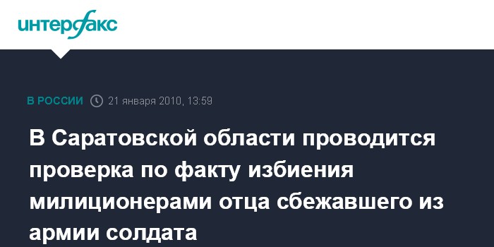 В Саратовской области проводится проверка по факту избиения милиционерами отца сбежавшего из армии солдата