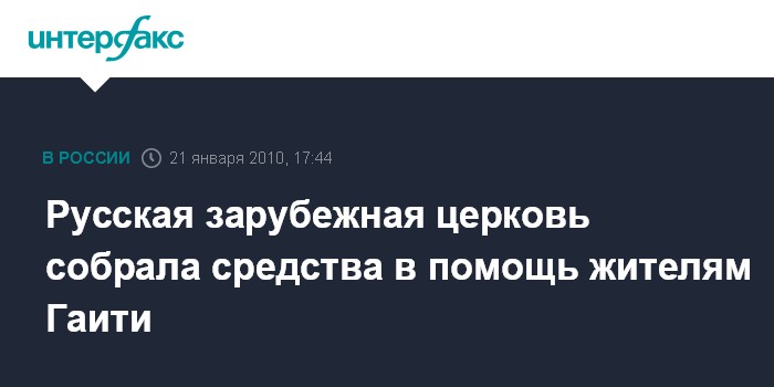 Нью-Йорк. 21 января. INTERFAX.RU - Попечительский фонд Русской православной церкви за границей собрал более $50 тыс. для оказания помощи пострадавшим в результате землетрясений на Гаити.