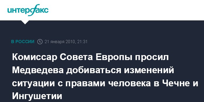 Комиссар Совета Европы просил Медведева добиваться изменений ситуации с правами человека в Чечне и Ингушетии
