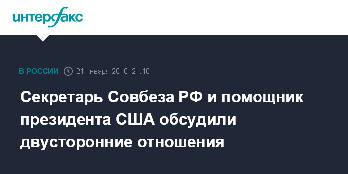 Секретарь Совбеза РФ и помощник президента США обсудили двусторонние отношения