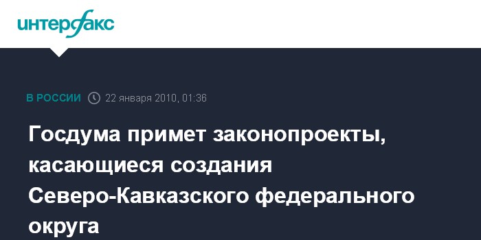 Госдума примет законопроекты, касающиеся создания Северо-Кавказского федерального округа