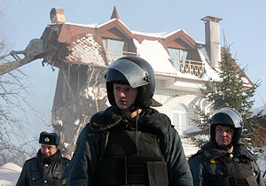 Не обошлось и без эксцессов. Владелец одного из домов в поселке "Речник", который по плану собираются сносить следующим, забаррикадировался и не намерен пускать в свое жилье судебных приставов. "К дому подтягивается техника. Скоро, видимо, начнется штурм. В доме забаррикадировались хозяин и еще около 20 человек", - сказал "Интерфаксу" в пятницу координатор "Левого фронта" Сергей Удальцов, который находится в поселке "Речник". Удальцов отметил, что дом в "Речнике" - это единственное жилье его владельца. "Просто так снести этот дом не удастся. Хозяин говорит, что, если будут штурмовать, он совершит самосожжение", - сказал Удальцов.