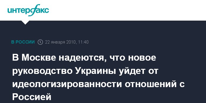 В Москве надеются, что новое руководство Украины уйдет от идеологизированности отношений с Россией