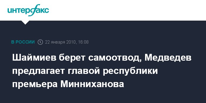 Шаймиев берет самоотвод, Медведев предлагает главой республики премьера Минниханова