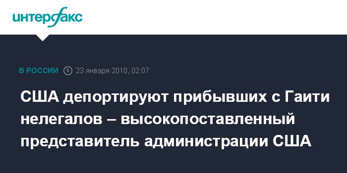 Лондон. 23 января. ИНТЕРФАКС - Министр национальной безопасности Соединенных штатов Джанет Наполитано заявила, что нелегалы с Гаити, прибывшие в США после недавнего разрушительного землетрясения в своей страны, будут депортированы обратно на родину.