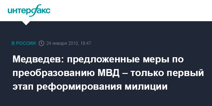 Медведев: предложенные меры по преобразованию МВД – только первый этап реформирования милиции