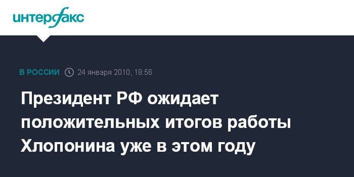 Президент РФ ожидает положительных итогов работы Хлопонина уже в этом году