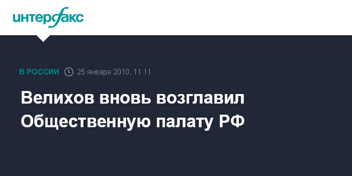 Как передает корреспондент "Интерфакса", Велихов был вновь избран на этот пост в понедельник на первом пленарном заседании Общественной палаты третьего состава.