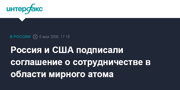 Россия и США подписали соглашение о сотрудничестве в области мирного атома