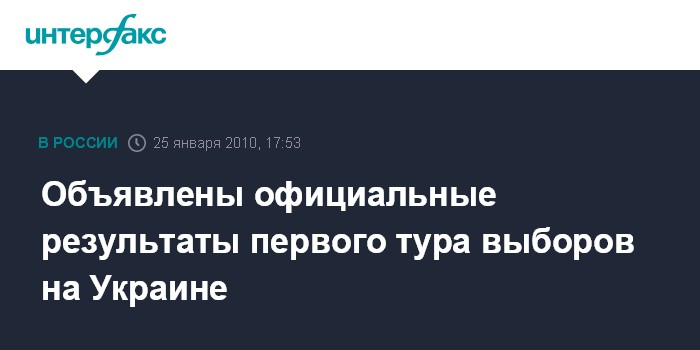 Киев. 25 января. INTERFAX.RU - В первом туре выборов президента Украины победили лидер Партии регионов Виктор Янукович и премьер-министр Украины Юлия Тимошенко.