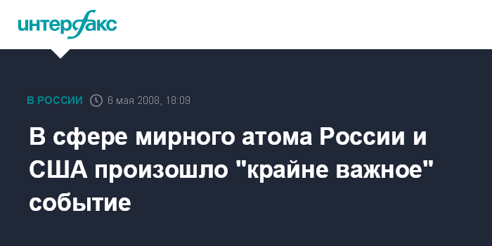В сфере мирного атома России и США произошло "крайне важное" событие