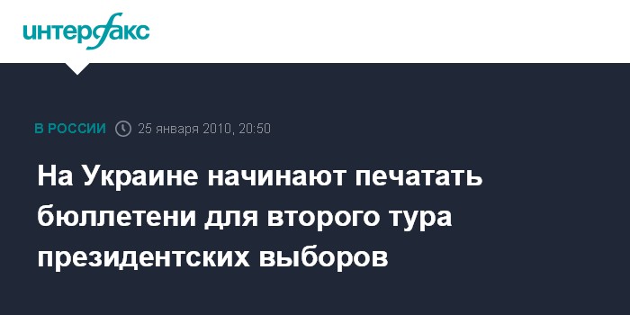 Киев. 25 января. INTERFAX.RU - Полиграфкомбинат "Украина" уже 26 января приступит к печати бюллетеней для голосования на повторных выборах президента Украины, которые пройдут 7 февраля, сообщила заместитель председателя Центральной избирательной комиссии Жанна Усенко-Черная .