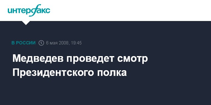 Москва. 6 мая. ИНТЕРФАКС - Дмитрий Медведев в среду по окончании церемонии вступления в должность главы российского государства проведет смотр Президентского полка.