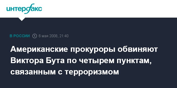 Американские прокуроры обвиняют Виктора Бута по четырем пунктам, связанным с терроризмом