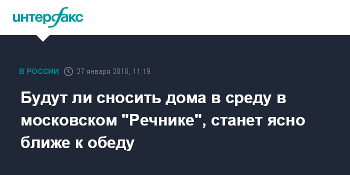Будут ли сносить дома в среду в московском "Речнике", станет ясно ближе к обеду