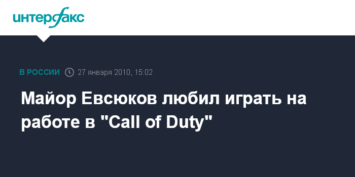 Майор Евсюков любил играть на работе в "Call of Duty"