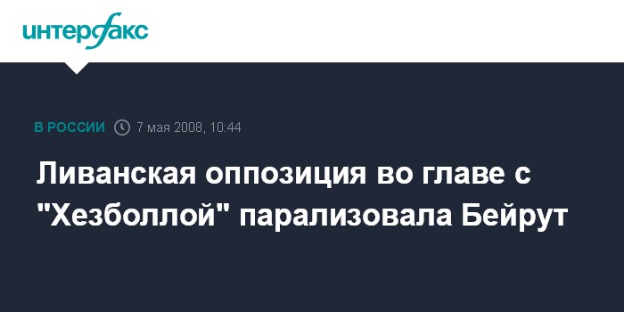 Бейрут. 7 мая. INTERFAX.RU - Крупная антиправительственная забастовка началась сегодня в Ливане. С призывом к ее проведению выступила оппозиция во главе с шиитским движением "Хезболла".