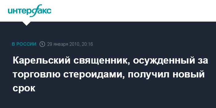 Петрозаводск. 29 января. INTERFAX.RU - Суд Петрозаводска вынес приговор по делу бывшего лютеранского священнослужителя, который ранее был осужден за торговлю анаболическими стероидами.