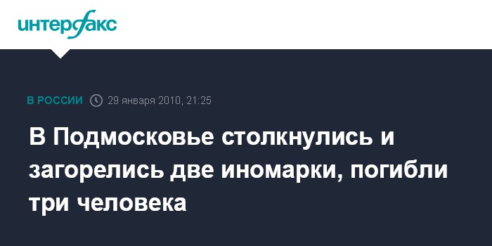 Москва. 29 января. INTERFAX.RU - В Подмосковье в результате ДТП погибли три человека, двое получили травмы, сообщил в пятницу "Интерфаксу" источник в правоохранительных органах.