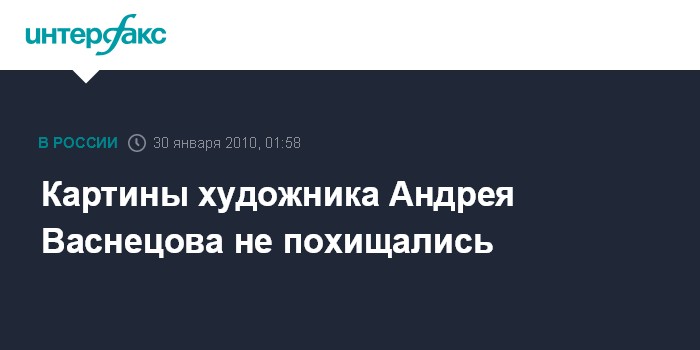 Москва. 30 января. ИНТЕРФАКС-МОСКВА - Заявление о краже картин, написанных внуком выдающегося русского художника Виктора Васнецова Андреем, не соответствует действительности.